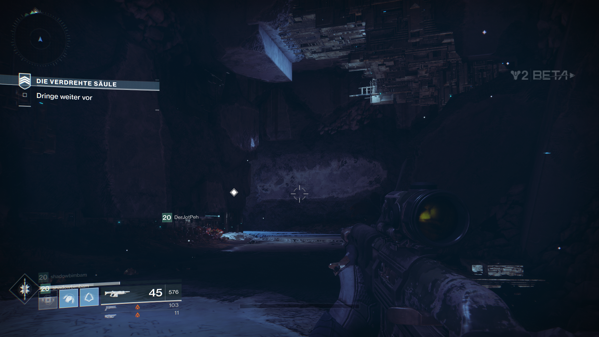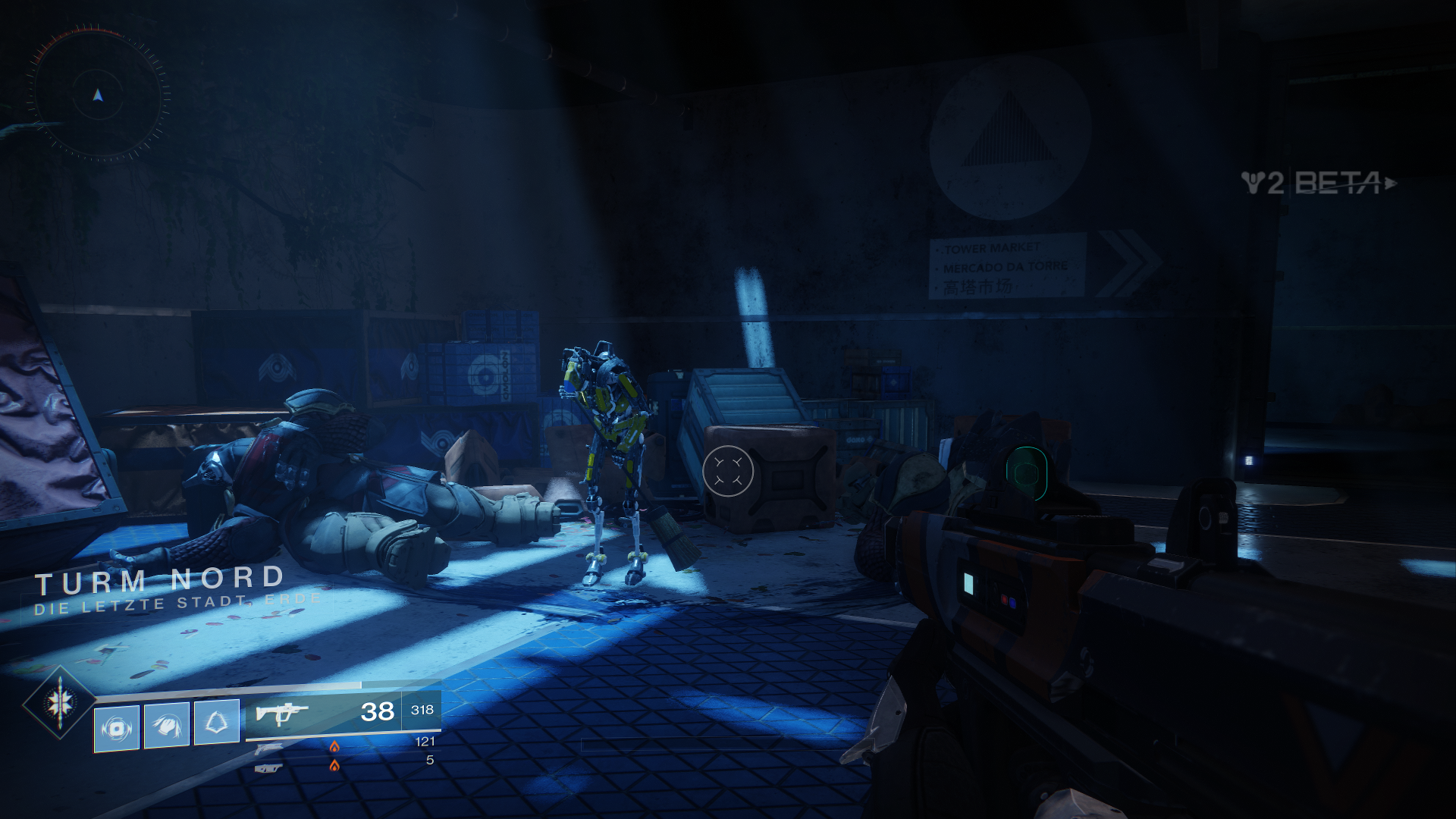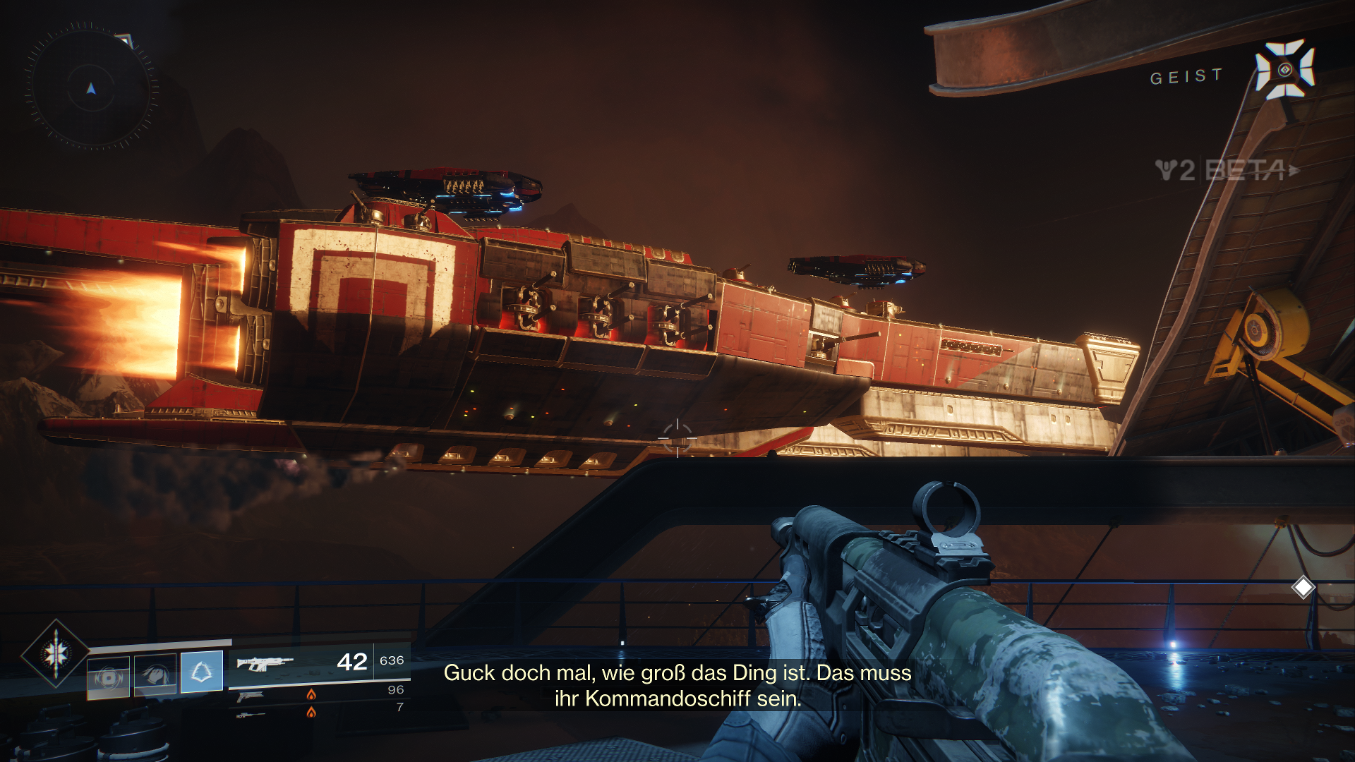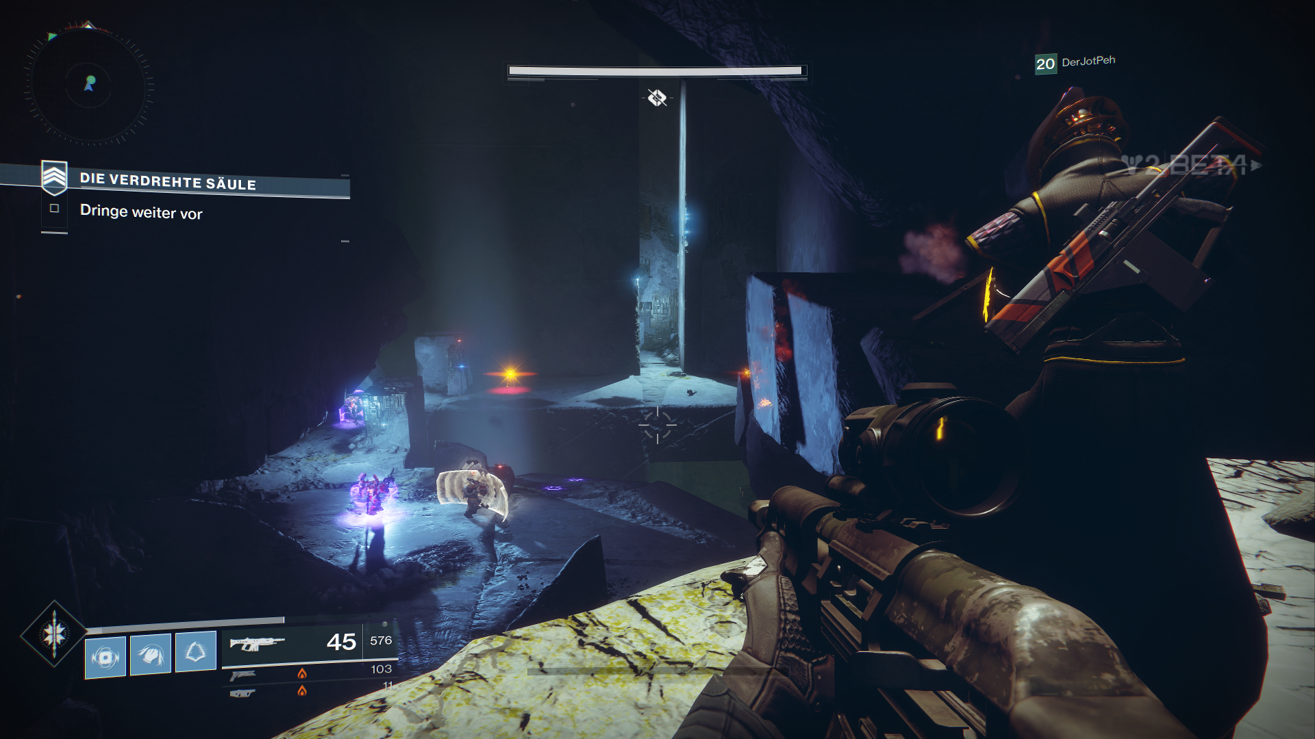 Außerdem dürfen wir innerhalb der Beta auch schon mal drei neue exotische Waffen ausprobieren, als Hunter den Sonnenschuss, einen Revolver. Zudem fällt direkt erst mal das neue Waffen-System auf, welches uns erlaubt, sogenannte Energiewaffen zu nutzen. Das sind normale Waffen, welche Elementarschaden anrichten. Zudem bekommen wir als Powerwaffe sogar einen der neuen Granatwerfer in die Hand gedrückt.