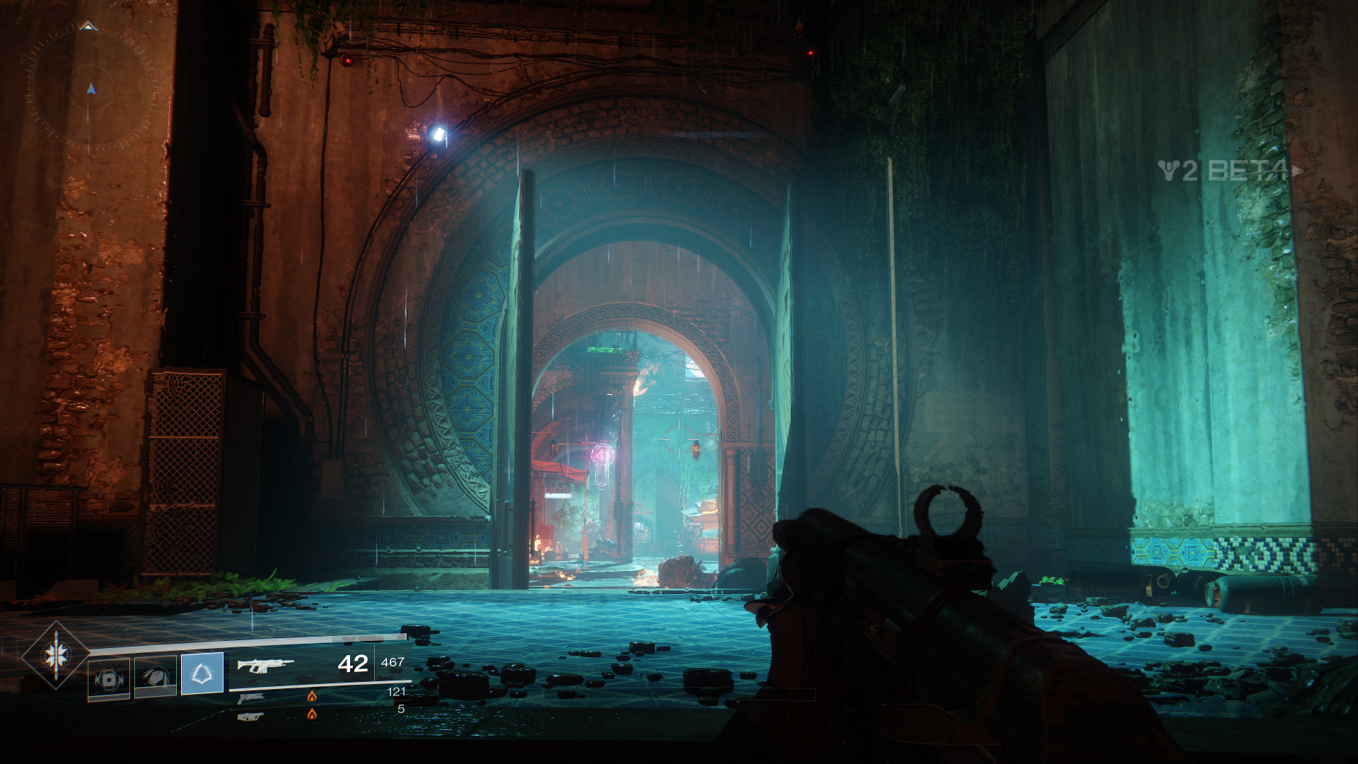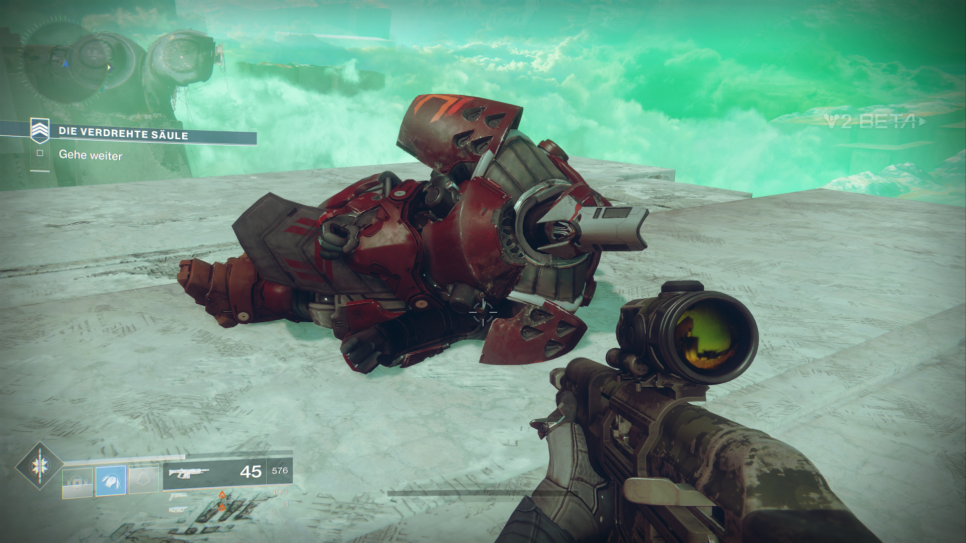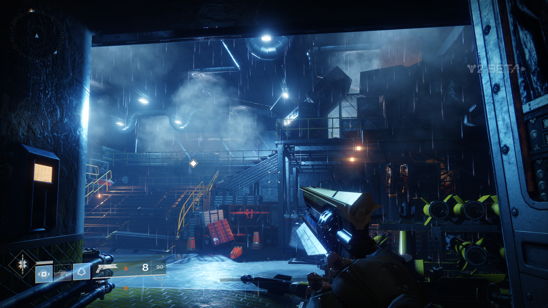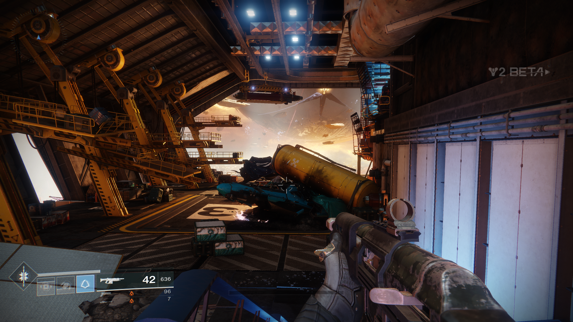 Außerdem dürfen wir innerhalb der Beta auch schon mal drei neue exotische Waffen ausprobieren, als Hunter den Sonnenschuss, einen Revolver. Zudem fällt direkt erst mal das neue Waffen-System auf, welches uns erlaubt, sogenannte Energiewaffen zu nutzen. Das sind normale Waffen, welche Elementarschaden anrichten. Zudem bekommen wir als Powerwaffe sogar einen der neuen Granatwerfer in die Hand gedrückt.